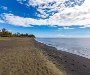 Fahren Sie in völliger Freiheit die schwarzen Sandpisten hinunter, fahren Sie im Slalom zwischen Latanenbäumen, Chocas, Tamarinden und Eukalyptusbäumen in völliger Gemeinschaft mit der Natur. Sanddünen, Savannen, wilde Strände, Teiche, herrliche Ausblicke auf den Ozean... sind allesamt Landschaften, die sich auf dieser Strecke kombinieren lassen, die mit einem Geschmacks-Cocktail aus den Farben der Küste und dem Widerschein der untergehenden Sonne endet.