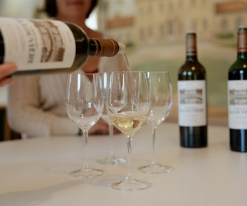 Ihr Spaziergang endet mit einer Weinprobe von zwei Weinen des Château La Louvière oder Fruchtsaft für Kinder (keine Besichtigung der Weinkeller).