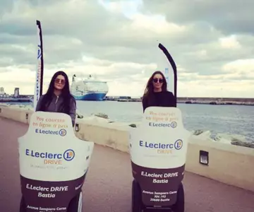 La cartelería móvil como complemento de las operaciones de street-marketing puro, el medio ideal para alcanzar sus objetivos de creación de tráfico y desarrollo de la notoriedad de su marca en Ile Rousse.