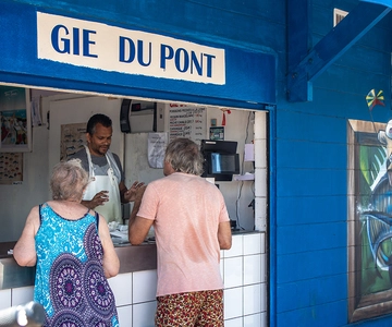 Une fois prêt, cap sur le quartier de Terre Sainte, niché juste après le pont de la rivière d’Abord. Ici, l’autonomie est reine : je peux suivre le parcours proposé ou laisser libre cours à mes envies. Je peux m’arrêter pour admirer une fresque de street art, savourer un snack en bord de mer ou explorer une boutique artisanale : tout est permis !