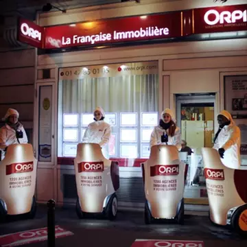 En incorporant un système de vidéo projection et sonore à ses gyropodes Segway, MOBILBOARD réalise une première mondiale et se place en véritable précurseur en matière de communication écologique et numérique. Cette gigantesque opération de street marketing a été commandée par le réseau d'agences immobilières ORPI qui souhaitait accroître sa visibilité autour de ses agences clés de Paris et de région parisienne.